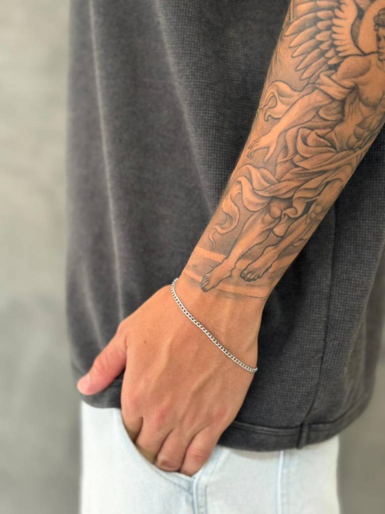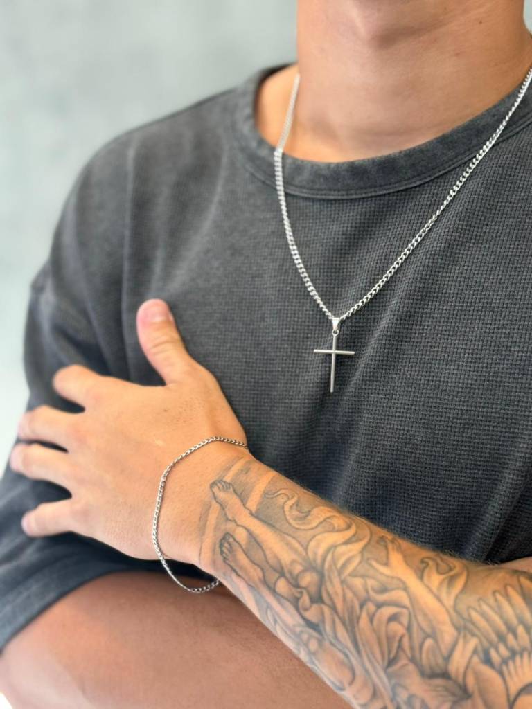 O Conjunto de Corrente e Pulseira em Prata 925 é perfeito para homens que valorizam sofisticação, qualidade e presença no visual. Produzido em prata 925 legítima, ele oferece brilho duradouro, resistência e um design moderno que combina com qualquer ocasião.